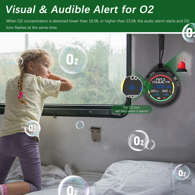 [6-in-1 dan Portable Design] RV detektor karbon monoksida mendeteksi CO, O2, tekanan atmosfer, ketinggian, suhu, kelembaban dalam waktu nyata.bisa dimasukkan ke saku dengan mudah. Juga, itu memiliki 7.8in tali, bisa digantung dan berdiri.