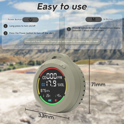 [Desain 6-in-1 dan Portabel] Detektor karbon monoksida rv mendeteksi co, o2, tekanan atmosfer, ketinggian, suhu, kelembaban secara real-time. Dengan ukuran mini 2.8 * 1.3 inci, dapat dengan mudah dimasukkan ke dalam saku. Juga, ia memiliki tali lanyard 7.8 inci, dapat digantung dan berdiri.