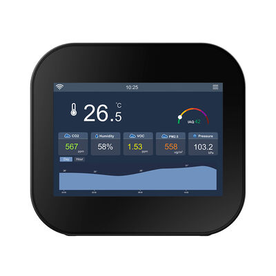 Tampilan layar sentuh yang ramah pengguna: Visualisasi data IAQ real-time dan tren historis yang jelas