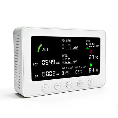 | Penggunaan yang dimaksud | Mendeteksi dan secara digital real-time memantau: CO2, CO, Serbuk sari, PM1.0, PM2.5, TVOC, Kelembaban,AQI, Noise |